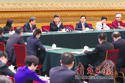 3月7日,中共中央总书记、国家主席、中央军委主席习近平参加十三届全国人大一次会议广东代表团的审议。 新华社发