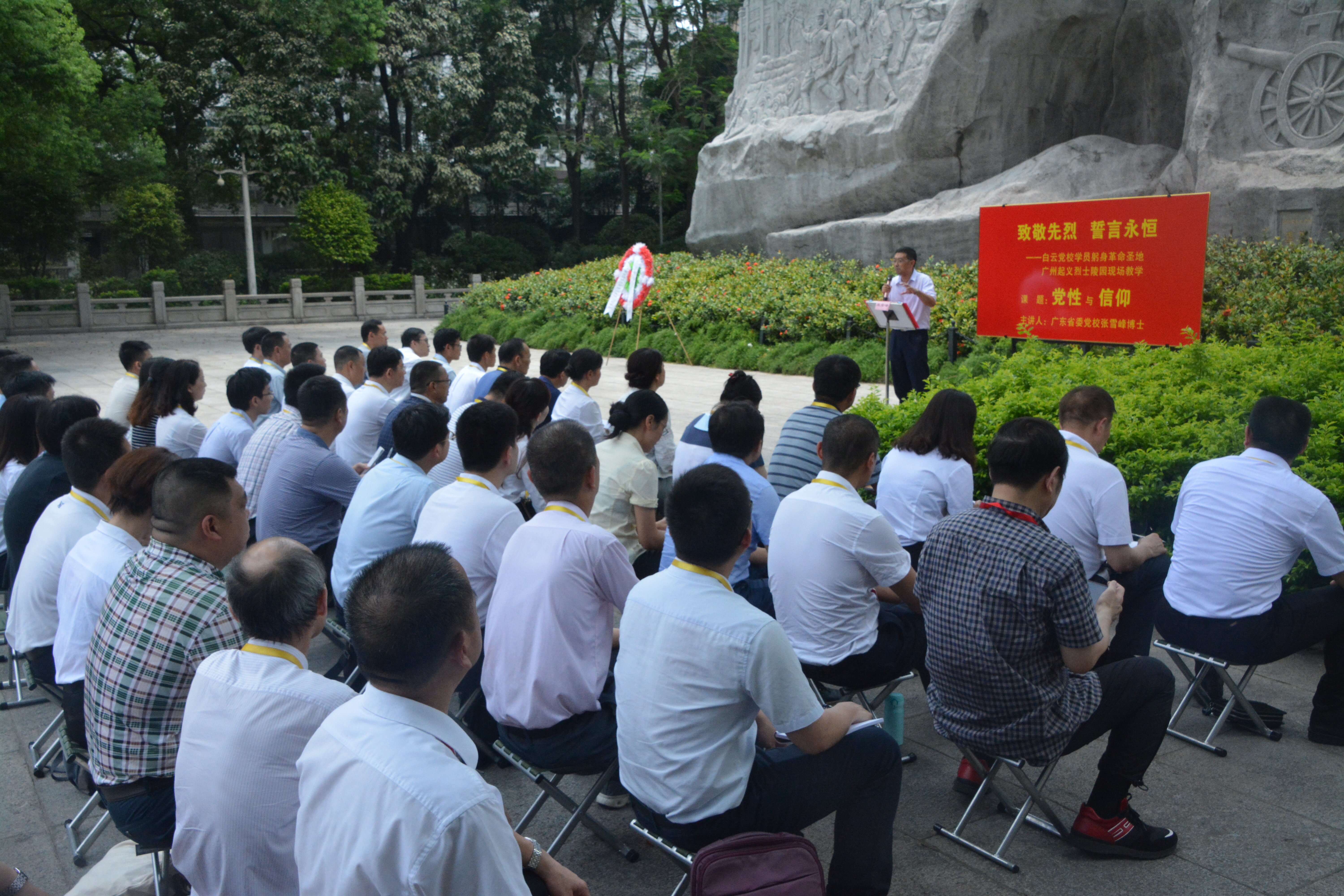 近日,白云区委党校积极探索新的教学模式,组织学员走出校园,在广州起义烈士陵园开展“党性与信仰”的现场教学活动。白云区2018年科级公务员任职培训班48名学员在烈士纪念碑前坐着小马扎,专心地听广东省委党校副教授张雪峰讲述中国共产党的光辉历程。