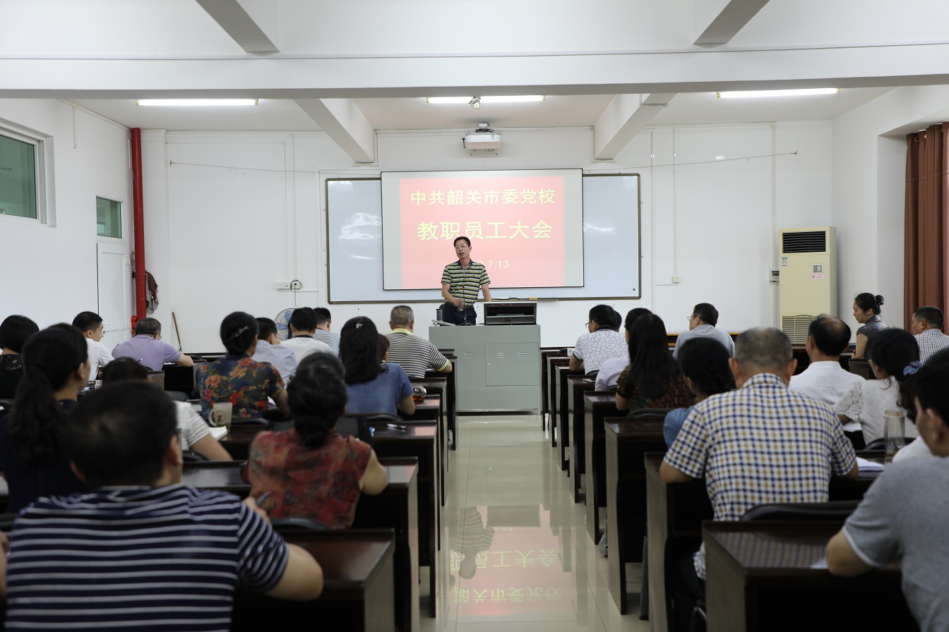 7月13日,韶关市委党校召开教职员工大会,学习贯彻省委十二届四次全会、市委十二届七次全会的会议精神,总结本学期的工作成绩,并对下学期工作进行部署。