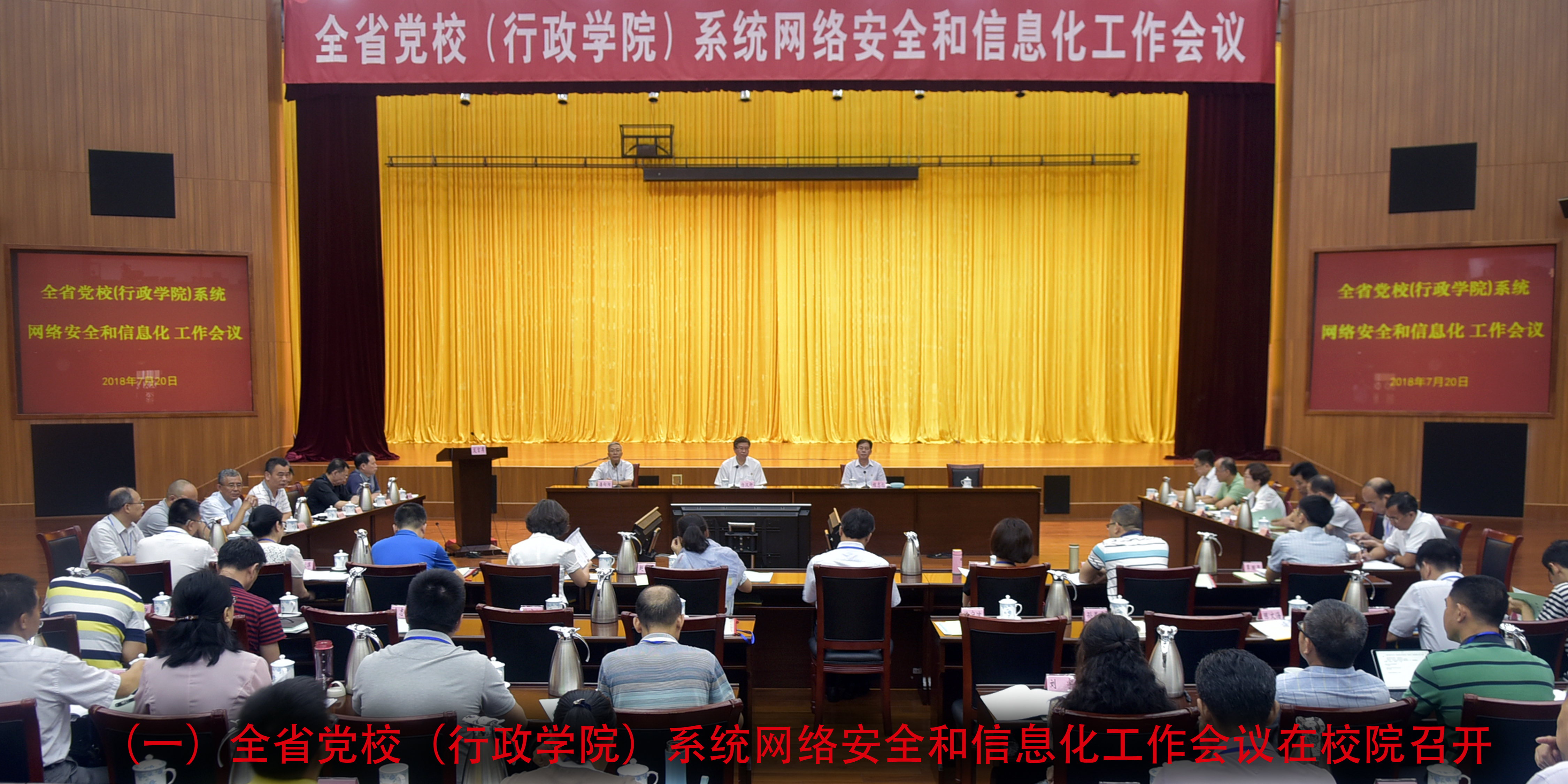 7月20日,全省党校(行政学院)系统网络安全和信息化工作会议在我校院召开。会上举行了省委党校智慧校园上线开通仪式,常务副校院长、网络安全和信息化工作领导小组组长杨汉卿出席会议并讲话,校院委委员、巡视员、网络安全和信息化工作领导小组副组长程志彪作工作报告,校院委委员、网络安全和信息化工作领导小组副组长潘向阳主持会议。