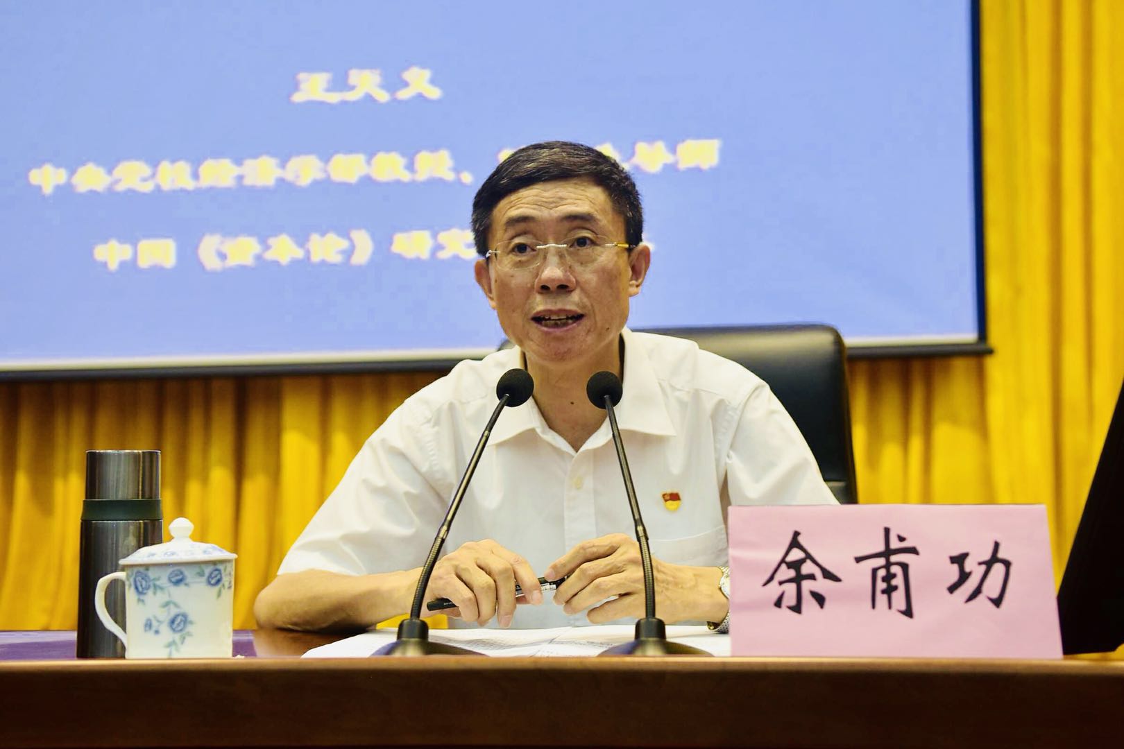 5月25日上午,中央党校经济学部王天义教授为我校院主体班次学员讲授“《资本论》导读”,报告由副校院长余甫功主持,市厅班、县处一班、政法班、中青一班、二班和妇干班学员共400多人参加了报告会。