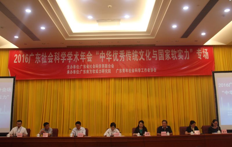 又讯,当日下午,广东青年社会科学工作者协会还与广东南方软实力研究院共同承办了“中华优秀传统文化与国家软实力”学术研讨会,该场研讨会是“2016年广东社科年会”12个分会场的第一场会议。来自我省社科界的专家学者围绕会议主题展开了热烈的研讨。我校省情教研部史永俊教授、校刊编辑部李艳中编审、党史党建教研部张雪峰副教授、图书馆阴江烽副研究馆员向会议提交了论文并参加会议。