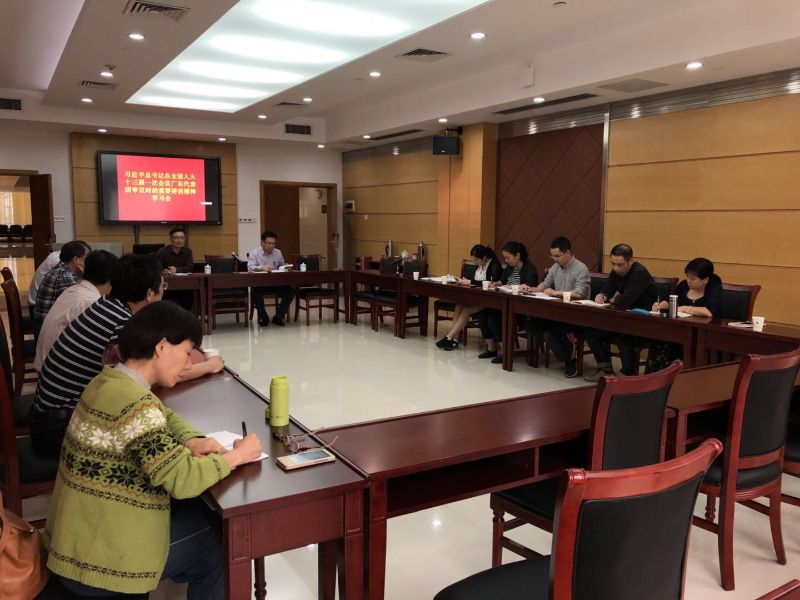 4月13日上午,干部教育学院、科研处党支部联合组织专题学习会,深入学习习近平总书记在全国人大十三届一次会议广东代表团审议时的重要讲话精神。科研处党支部书记林盛根同志作学习辅导,干部教育学院党支部书记古斌同志主持会议。