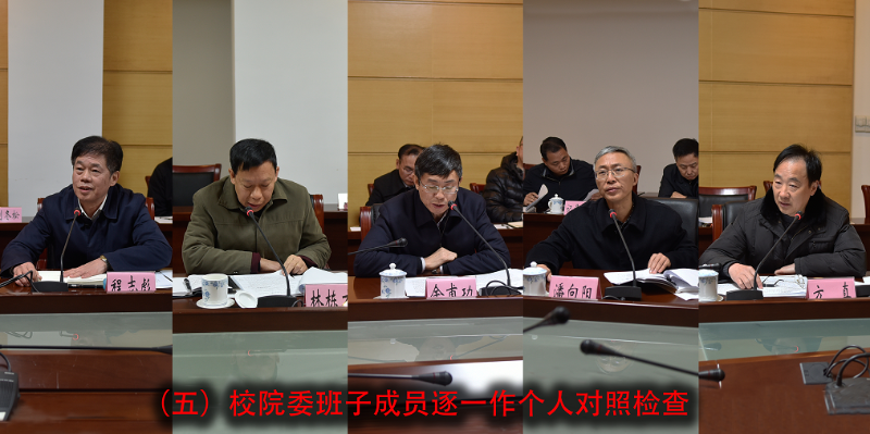 杨汉卿同志通报了民主生活会准备情况,代表校院委领导班子进行了对照检查,并带头对自身存在问题进行查摆和剖析。班子成员逐一进行个人发言,大家以“认真学习领会习近平新时代中国特色社会主义思想,坚定维护以习近平同志为核心的党中央权威和集中统一领导,以习近平新时代中国特色社会主义思想统领一切工作,不折不扣、全面贯彻落实党的十九大各项决策部署,奋力在新时代干出新气象、实现新作为,推动十九大精神在广东落地生根、开花结果”为主题,重点对照党章、《中共中央政治局关于加强和维护党中央集中统一领导的若干规定》和《中共中央政治局贯彻落实中央八项规定实施细则》,对照初心和使命,紧密联系思想和工作实际,进行党性分析,深入查摆在学习贯彻习近平新时代中国特色社会主义思想,带头严守政治纪律和政治规矩,认真执行党中央决策部署和省委决议决定等方面存在的问题,深刻剖析产生问题的原因,进一步明确努力方向和整改措施。班子成员相互之间坦诚开展批评与自我批评,大家敞开心扉、畅所欲言、红脸出汗,起到了改进思想、工作和作风的成效。杨汉卿同志在会议小结时强调,校院委领导班子要不断加强自身建设,一要增强政治责任,提高政治站位,把思想和行动统一到习近平新时代中国特色社会主义思想上来。二要加强政治学习,提升政治能力,自觉用习近平新时代中国特色社会主义思想武装头脑、指导实践。三要从严治党、从严治校,切实抓好整改。