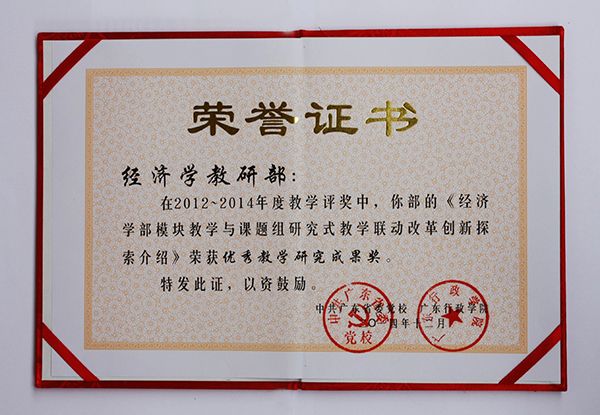 经济学教研部的“加快县域经济转型升级,建设幸福广东”教学模块获优秀教学模块奖二等奖(获得此奖项的共2个单位)。
