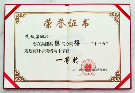 在国家“十三五”规划编制过程中,国家发改委于2015年11月至2016年1月开展了主题为“共建共享,同心同德”的国家“十三五”规划问计求策活动,请社会各界共同为国家“十三五”发展出谋划策、描绘蓝图。全国企业界、学术界、政界等各界人士积极建言献策,共有1.6万多人次参与并提出3万多条建言。在问计求策活动结束后,国家发展改革委对有建设性和针对性的建言进行汇总整理,由人民出版社出版了《共建共想 同心同德——“十三五”规划问计求策优秀建言选编》。在此基础上,国家发展改革委组织专家评审,评选出个人奖项135个(其中“一等奖”20个、“二等奖”40个、“三等奖”75个);在承担组织工作的单位及个人中,评选出奖项40个(其中“优秀组织奖”26个、“特别贡献奖”14个)。