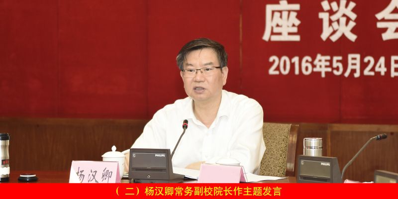 为深入学习和推进习近平总书记在哲学社会科学工作座谈会上重要讲话精神的贯彻落实,5月24日下午,校院召开学习习近平总书记在哲学社会科学工作座谈会上重要讲话精神座谈会。杨汉卿常务副校院长出席并作讲话。会议由苟志效副校院长主持,校院委领导、副巡视员,各教研教辅部门、教务处、科研处、研究生部负责人及教师60余人参加会议。